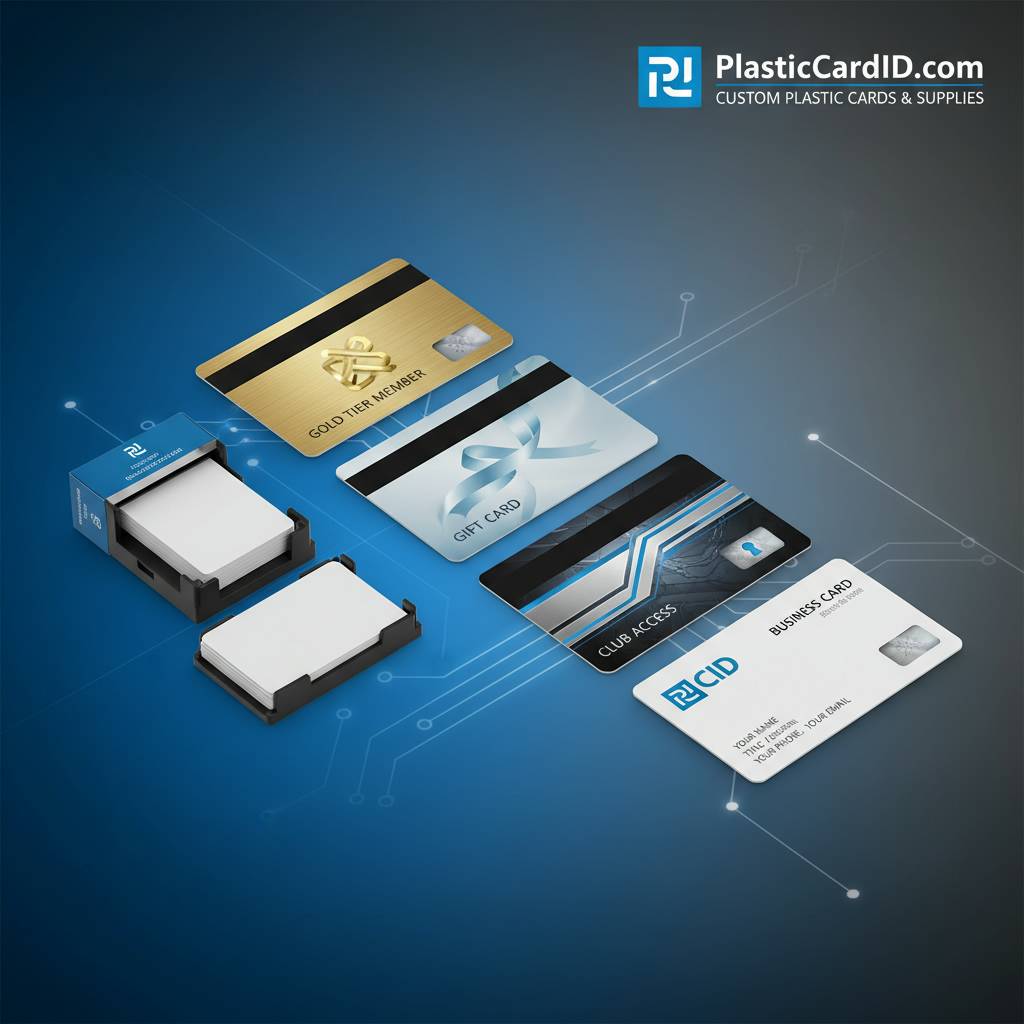 Business, Gift Modern Custom Plastic Card Solutions Custom plastic cards are a great way to promote and grow your business, from loyalty cards, to gift cards, membership cards, hotel key cards...